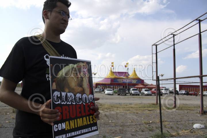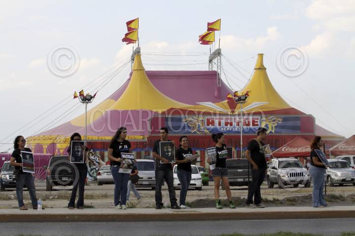 MONTERREY. NUEVO LEÓN, 04AGOSTO2012.- Activistas de AnimaNaturalis se manifestaron frente a las instalaciones del circo Atayde Hermanos con el fin de rechazar que se utilicen animales en los circos, además de informar el abuso y explotación de los mismos en sus espectáculos. FOTO: GABRIELA PÉREZ MONTIEL /CUARTOSCURO.COM