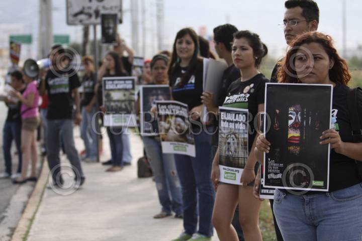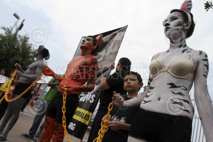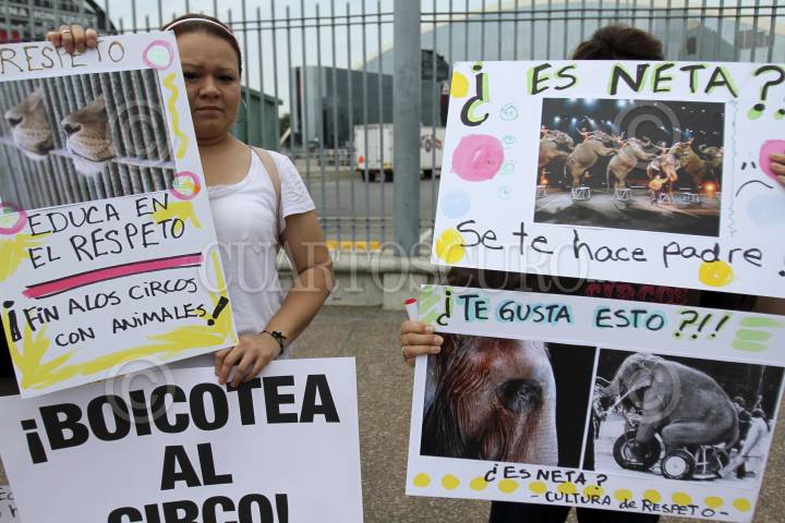 MONTERREY, NUEVO LEÓN.- La asociación AnimaNaturalis se manifestó en las afueras de la Arena Monterrey en donde el circo Ringling Brothers - Barnum and Bailey, considerado uno de los más crueles a nivel mundial por el maltrato a animales. El circo norteamericano no puede presentarse en Estados Unidos pero en México si está permitido. FOTO: GABRIELA PÉREZ MONTIEL /CUARTOSCURO.COM