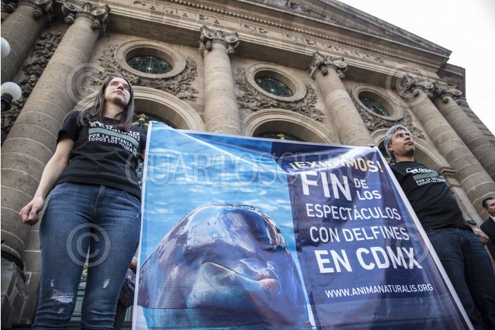 CIUDAD DE MÉXICO, 01AGOSTO2017.- Leonora Esquivel, fundadora de “AnimaNaturalis” e integrantes de esta organización , se manifestaron a la afueras de la Asamblea Legislativa del Distrito Federal (ALDF) para apoyar la propuesta del Partido Verde Ecologista de México (PVEM) la cual indica una reforma a la Ley de Establecimientos Mercantiles para la prohibición de delfinarios en la Ciudad de México. FOTO: MARIO JASSO /CUARTOSCURO.COM