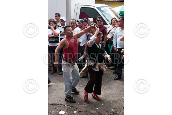 MÉXICO, D.F., 24SEPTIEMBRE2015.- Locatarios y vecinos del mercado de la Merced festejaron el 58 aniversario del lugar y a la virgen de la Merced con música de banda, cumbia y salsa, además con la preparación de mucha comida para todos los comerciantes y visitantes. Grupos de comerciantes se organizan para instalar distintos sonideros para que los cargadores y vendedores puedan pulir las improvisadas pistas de baile sobre las calles aledañas a las naves comerciales, el alcohol es algo que no puede faltar para armarse de valor. Además se organizan peleas de lucha libre donde los niños son quienes disfrutan más de este espectáculo. FOTO: DIEGO SIMÓN SÁNCHEZ /CUARTOSCURO.COM