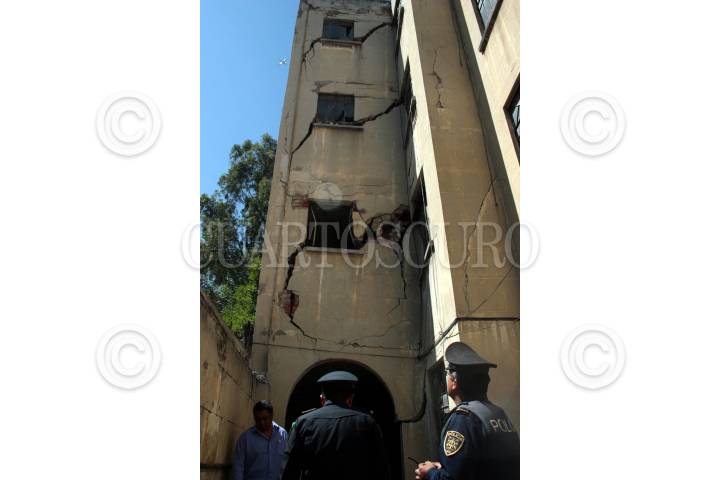 MEXICO, D.F.13ABRIL2007.-Debido al sismo de anoche, el inmueble ubicado en la calle de Amsterdam número 25, sufrió fuertes cuartedaduras en la fachada, lo que ocasionó que Protección Civil reubicara a las 10 famillias que habitaban el edificio, al albergue del Centro Rayo, del INVI. FOTO JEFTE ARGUELLO/CUARTOSCURO.COM