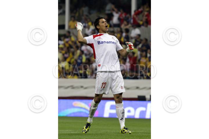 M…XICO, D.F., 02MAYO2010.- Alfredo Talvera, portero de los diablos del Toluca festeja la anotaciÛn de su equipo en contra de las Aguilas del America en el partido de cuartos de final del Torneo Bicentenario que se realizo en el estadio Azteca quedando el marcador empatado a 2 goles. FOTO: RODOLFO ANGULO/CUARTOSCURO.COM