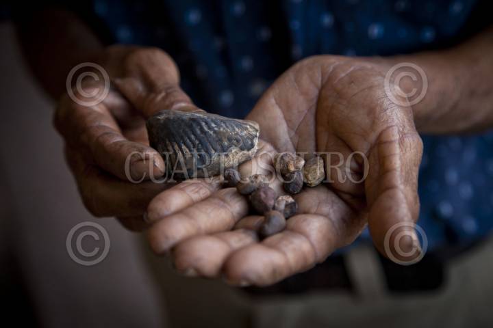 CULIACÁN, SINALOA, 25ENERO2014.-José Pesina, de 75 años, originario de Nuevo León, vende fósiles de animales, por lo regular almejas, caracoles, patas de mula y una que otra moneda antigua. Actualmente vive en el municipio de Navolato, desde hace 42 años, sin embargo, a veces va a su pueblo de origen y trae dichas piedras para sacar un poco de dinero, lo cual le servirá para comprar cacahuates y venderlos en el centro del municipio antes mencionado. Pesina no tiene un ojo ya que lo perdió por una infección, él como muchas otras personas de edad mayor, tiene que ser vendedores ambulantes para poder tener el mínimo ingreso para subsistir. FOTO: RASHIDE FRIAS /CUARTOSCURO.COM