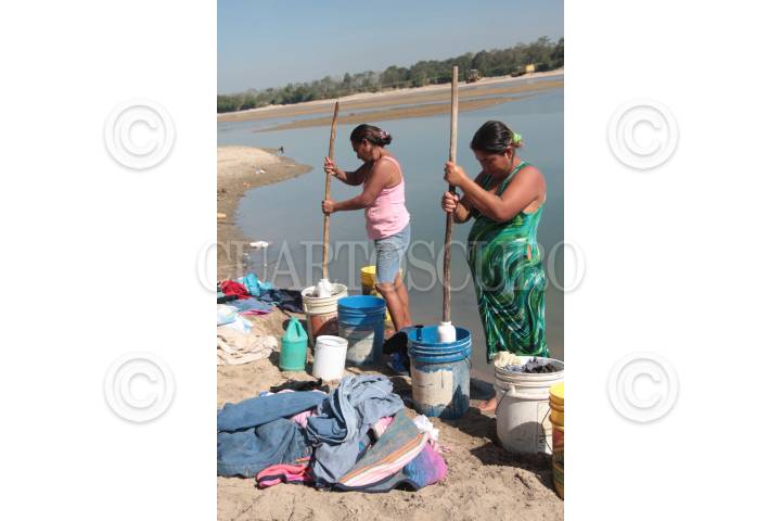 CUNDUACAN, TABASCO, 11MARZO2010.- Una humildes mujeres lavan la ropa de su familia a orillas del río Samaria. Este par de mujeres manifiestan que debido a que no cuentan con una lavadora eléctrica, su faena la tienen que realizar como en antaño; y es que la modernización en esta comunidad llamada ejido Samaria segunda sección aun no llega. FOTO: MARCO POLO GUZMÁN HERNÁNDEZ/CUARTOSCURO.COM