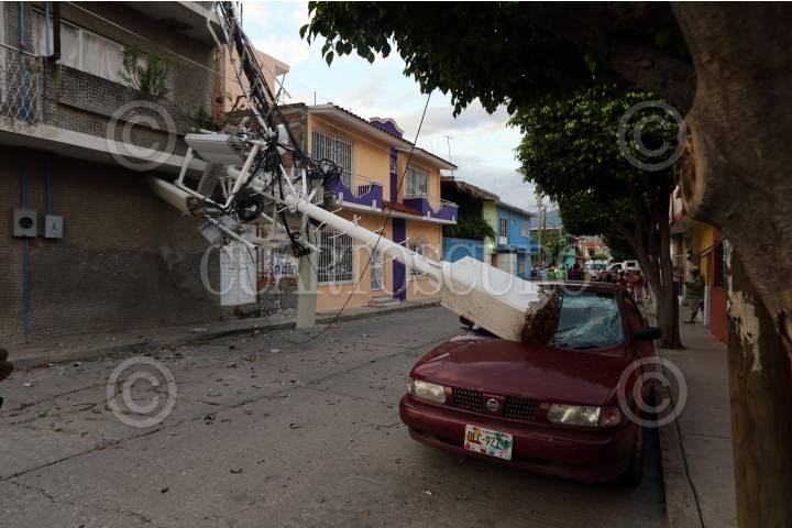 TUXTLA GUTIÉRREZ, CHIAPAS, 11SEPTIEMBRE2017.- Una réplica del sismo del jueves pasado se dejó sentir en el estado lo que provocó que una antena cayera afectado un coche estacionado, no se reportan heridos. FOTO: JACOB GARCÍA /CUARTOSCURO.COM