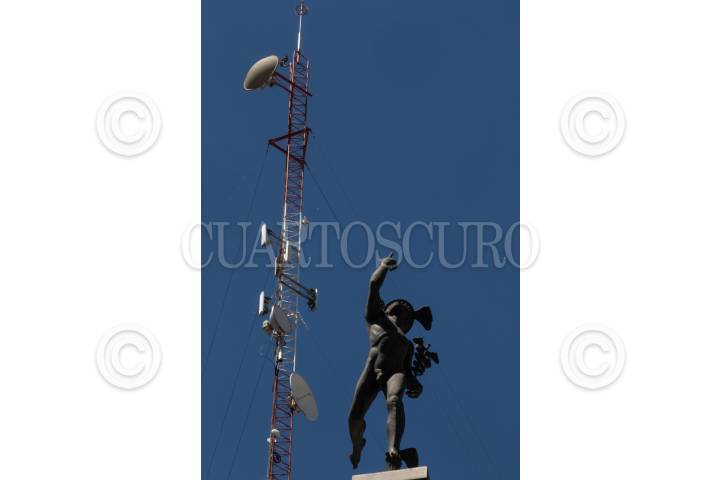 CIUDAD DE MÉXICO, 26SEPTIEMBRE2023.- Una antena de telecomunicaciones en uno de los techos de los edificios del Centro Histórico. FOTO: MOISÉS PABLO/CUARTOSCURO.COM