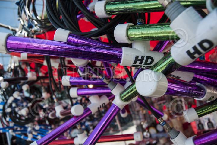 MÉXICO, D.F., 17DICIEMBRE2015.- El primer minuto de este jueves se llevo a cabo el apagón analógico, coordinado por el Instituto Federal de Telecomunicaciones (Ifetel), quedando así la señal de Televisión Digital Terrestre (TDT). La Secretaría de Comunicaciones y Transportes (SCT) informó que en caso de que no se cuente con televisión digital, los televidentes deberán conseguir un decodificador o una antena apta para recibir señales en las bandas VHF/UHF para ver los canales digitales. Vendedores ambulantes comercian antenas para recibir señal UHF afuera del metro Salto del Agua, ofertandolas en 40 pesos. FOTO: DIEGO SIMÓN SÁNCHEZ /CUARTOSCURO.COM