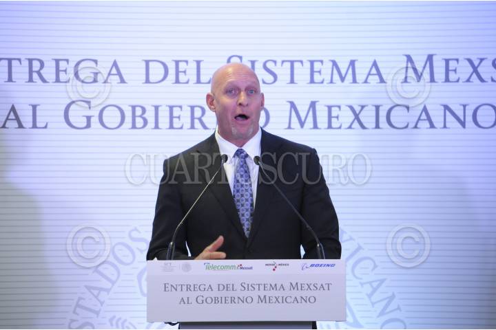 CIUDAD DE MÉXICO, 25AGOSTO2016.- Mark Spiwak, presidente de Boeing Satellite Systems International, durante el evento en el cual dicha empresa entregó el control total del Sistema Satelital Mexicano (Mexsat) incluido el del satélite Morelos 3, que fue lanzado en octubre de 2015, al gobierno mexicano. Dicho evento se desarrolló en el Conjunto Nacional de Telecomunicaciones ubicado en la delegación Iztapalapa. FOTO: DIEGO SIMÓN SÁNCHEZ /CUARTOSCURO.COM