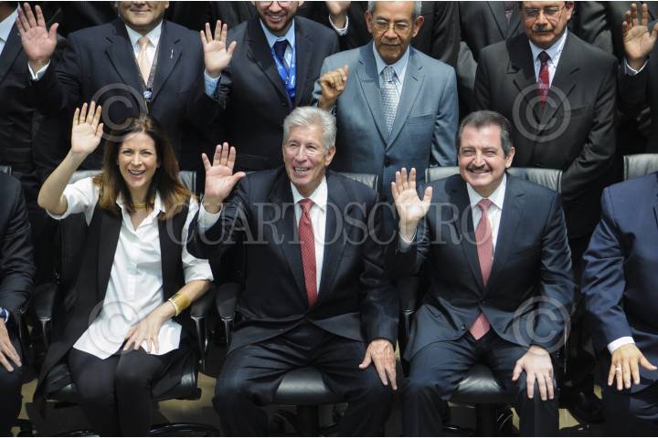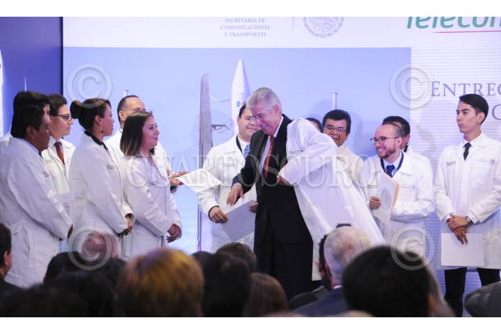 CIUDAD DE MÉXICO, 25AGOSTO2016.- Jorge Juraidini Rumilla, director general de Telecomunicaciones de México; Gerardo Ruiz Esparza, secretario de Comunicaciones y Transportes, y Mónica Aspe Bernal, subsecretaria de Comunicaciones, encabezaron el evento en el cual la empresa Boeing entregó el control total del Sistema Satelital Mexicano (Mexsat) incluido el del satélite Morelos 3, que fue lanzado en octubre de 2015, al gobierno mexicano. Dicho evento se desarrolló en el Conjunto Nacional de Telecomunicaciones ubicado en la delegación Iztapalapa. FOTO: DIEGO SIMÓN SÁNCHEZ /CUARTOSCURO.COM