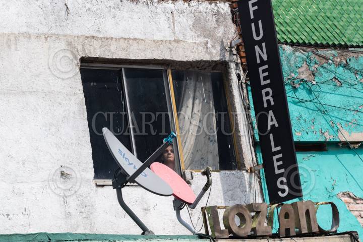 Un maniquí observa a través de la ventana en la marquesina de Funerales Lozano, en la colonia Doctores.