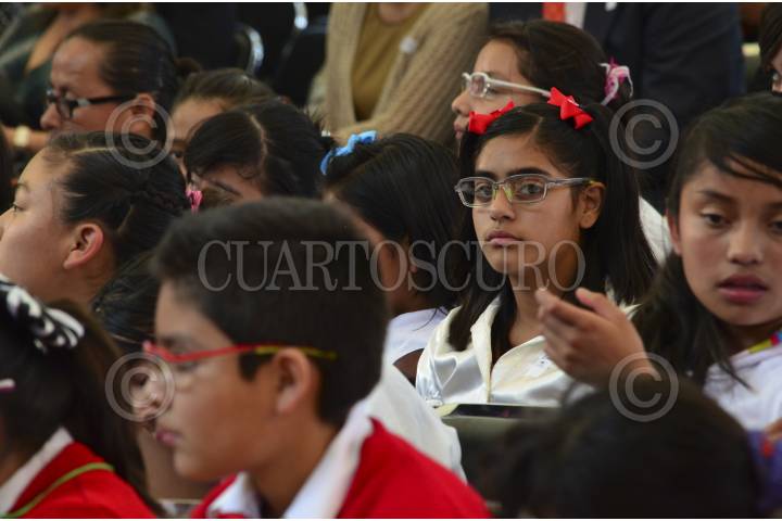 MÉXICO, DF, 22NOVIEMBRE2013.- El programa “Ver Bien para aprender Mejor”, una iniciativa de Segob, la asociación México Nos Mueve la Paz y el DIF nacional tiene como objetivo mejorar la calidad de vida y el nivel educativo de niños de escuelas primarias de estados como Hidalgo, Puebla y Querétaro, para alejarlos del crimen y la violencia. La meta del programa es entregar 567 mil pares de lentes. Se estima que el 75% de los alumnos mejorará sus calificaciones si tienen acceso a este programa. Angélica Rivera de Peña, presidenta del Consejo Ciudadano Consultivo del Sistema Nacional para el Desarrollo Integral de la Familia (DIF), no asistió. FOTO: MARÍA JOSÉ MARTÍNEZ / CUARTOSCURO.COM
