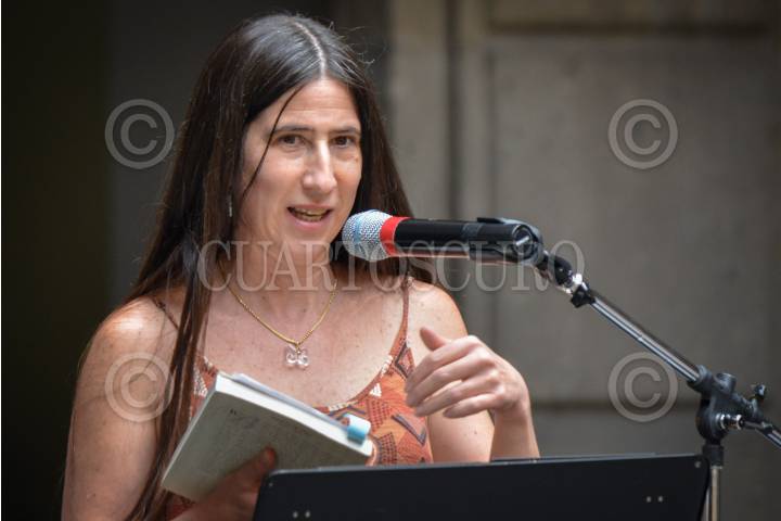 La poeta Malva Flores, lee un fragmento de poema en en el marco del programa de actividades Octavio Paz de vuelta a San Ildefonso