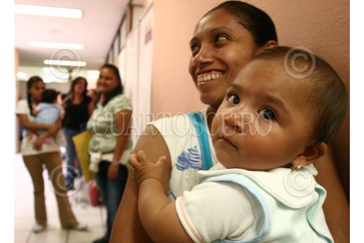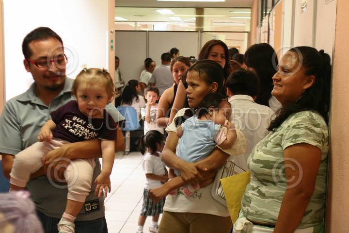 MÉXICO, D.F., 06OCTUBRE2009.- Miles de padres de familia acuden a Centros de Salud del Distrito federal para vacunar a sus hijos contra la influenza estacional. La vacuna Fluzone Antiinfluenza Trivalente tipos A y B Subririón, disminuye el número de consultas y el uso de antibióticos, del mismo modo reduce de 36% a 23% los casos de otitis media y disminuye en 42% las enfermedades respiratorias febriles. FOTO: SAÚL LÓPEZ/CUARTOSCURO.COM