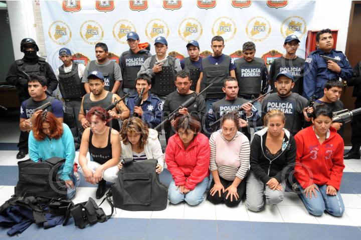 TLALNEPANTLA, EDO. DE MÉXICO, 03JULIO2009.- Derivado de un operativo efectuado por elementos de la Unidad Antisecuestros de la PGJEM, en el municipio de Ecatepec, se logró el aseguramiento de 24 sujetos, relacionados con los delitos de secuestro y homicidio. Los cuales se encontraban a las afueras del Centro Comercial Plaza Sendero, de la Colonia Santa Cruz Venta de Carpio. Se trata de la banda de “Los Charlys” FOTO: LUIS CARBAYO/CUARTOSCURO.COM