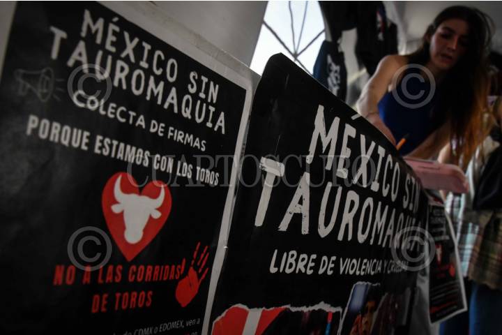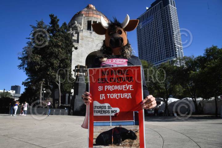 CIUDAD DE MÉXICO, 03FEBRERO2024.- Activistas antitauromaquia a un costado del Monumento a la Revolución buscan reunir 35 mil firmas, con un período hasta septiembre, para ser entregadas a la Suprema Corte de Justicia de la Nación, que busca prohibir definitivamente las corridas de toros. FOTO: MARIO JASSO/CUARTOSCURO.COM