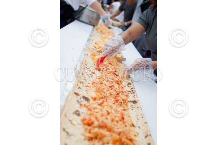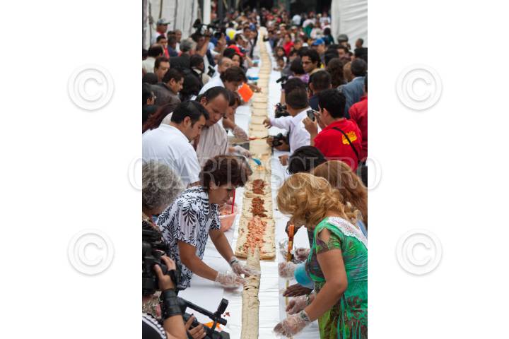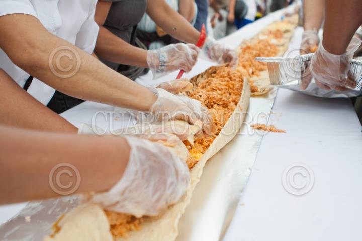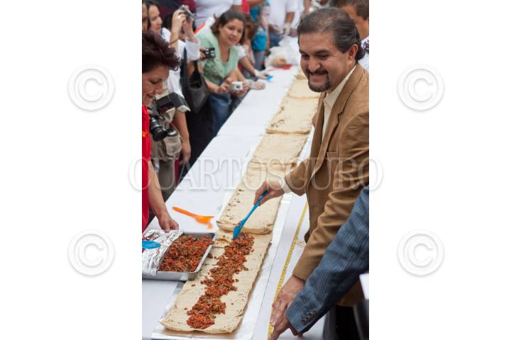MÉXICO, D.F., 22SEPTIEMBRE2011.- Decenas de personas realizaron el taco más largo del mundo, el cual medía más de 50 metros, durante el Segundo Festival de la Feria del Taco y el Mariachi, en la Plaza de Garibaldi. FOTO: ISAAC ESQUIVEL/CUARTOSCURO.COM