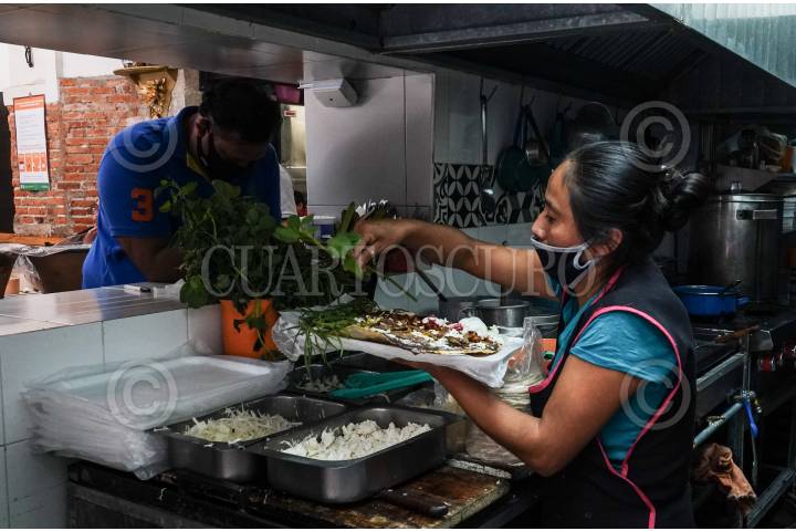 Los cocineros del restaurante Xaachila ubicado en el Centro Histórico se encargan de cocinar las layudas desde la materia prima