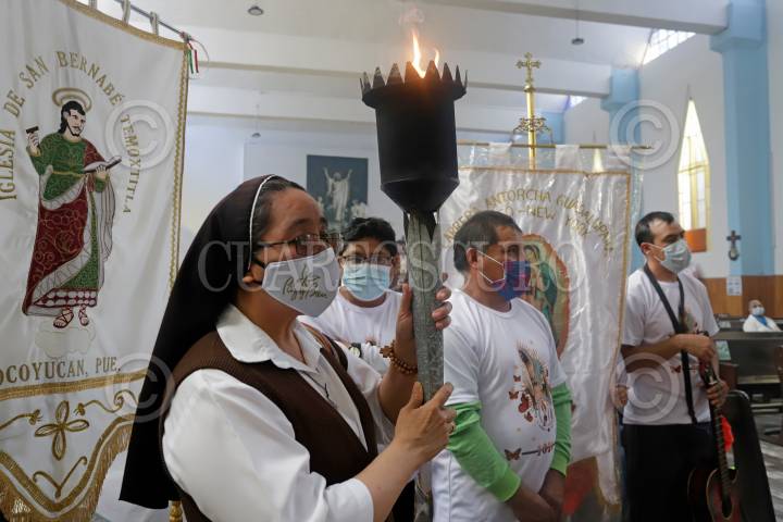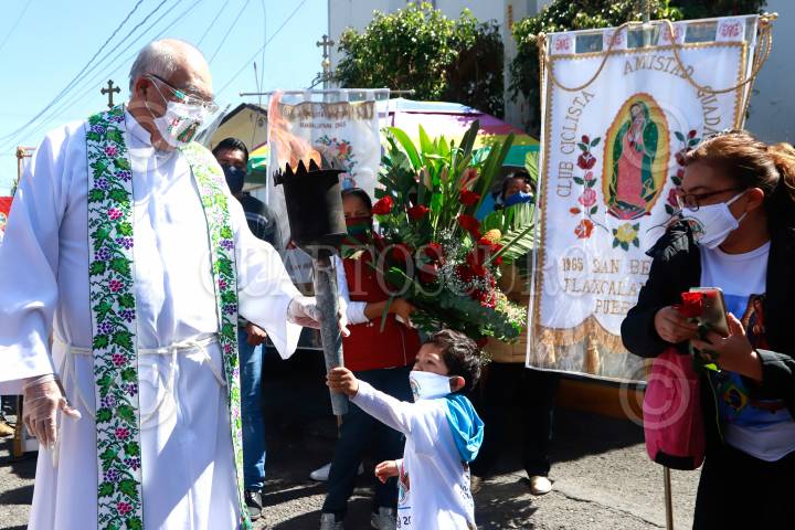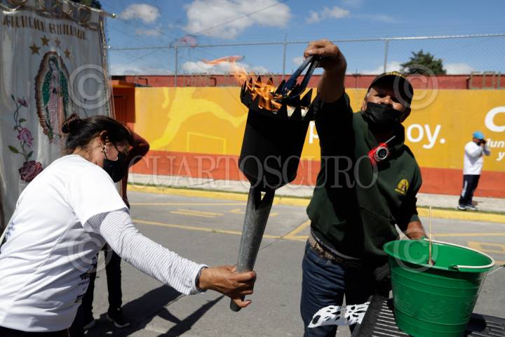 La Antorcha Guadalupana continúa su camino por el territorio nacional, esta mañana salió del municipio de San Andrés Cholula y al medio día arribó a la capital poblana, esta vez el recorrido se realizó sin corredores debido a la pandemia de Covid-19.