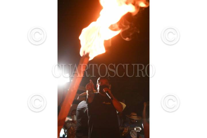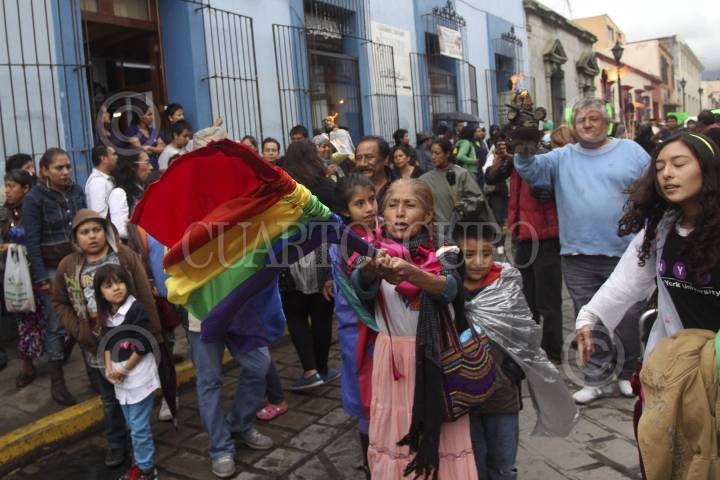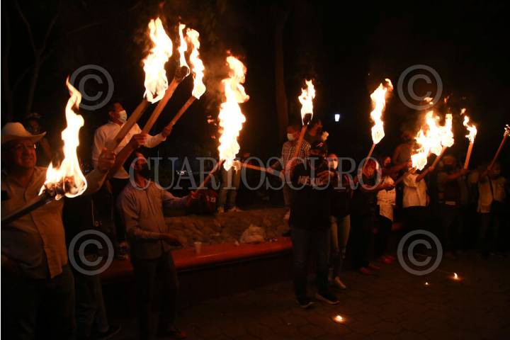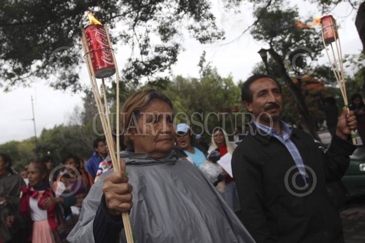 OAXACA, OAXACA, 14SEPTIEMBRE2013.- Integrantes del FUL - APPO realizaron esta tarde la "marcha de las antorchas" en apoyo a los profesores de la CNTE desalojados la tarde del viernes en la ciudad de México, los manifestantes aseguraron que en Oaxaca no habrá grito y que permanecerán en plantón en el zócalo de la ciudad. FOTO: ARTURO PÉREZ ALFONSO /CUARTOSCURO.COM
