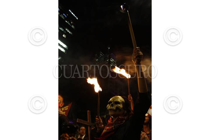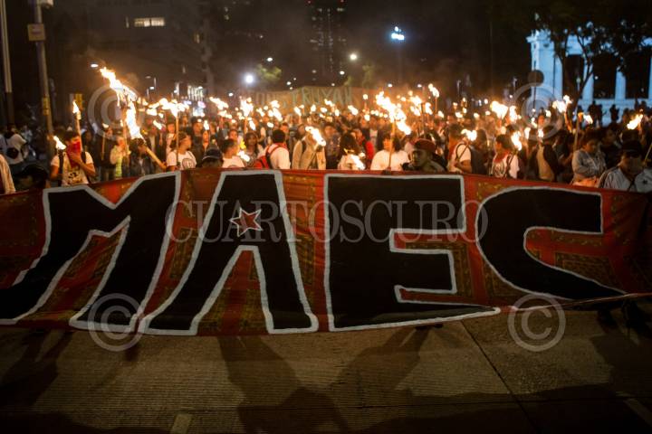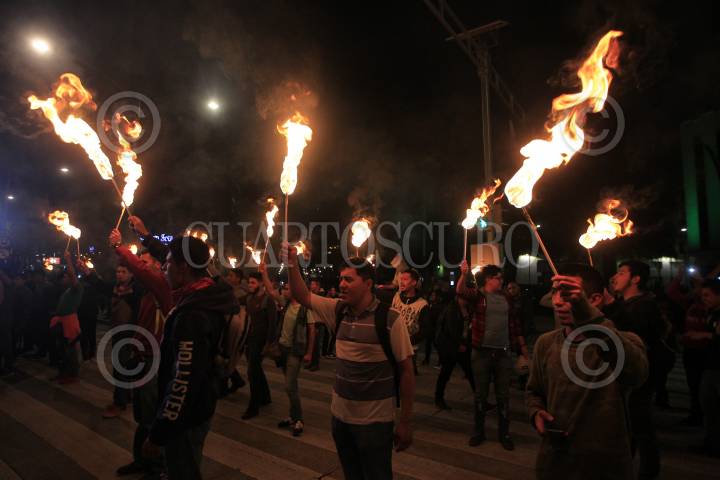 MÉXICO, D.F, 22OCTUBRE2014.- Con antorchas, miles de estudiantes de insituciones educativas privadas y públicas del país se manifestaron del Ángel al zócalo capitalino para exigir la presentación con vida de los 43 estudiantes desaparecidos de la Normal Rural de Ayotzinapa, Guerrero. FOTO: RODOLFO ANGULO /CUARTOSCURO.COM