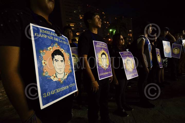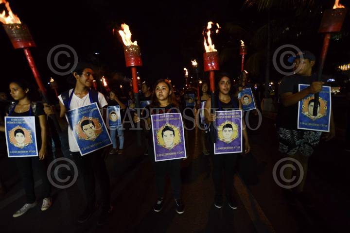 CANCÚN, QUINTANA ROO, 26SEPTIEMBRE2016.- Al cumplirse dos años de la desaparición de los 43 estudiantes de Ayotzinapa ciudadanos marcharon con el mismo número de antorchas en las calles de la ciudad, para exigir la presentación con vida de los normalistas. Estuvo presente José ángel Navarrete padre de uno de los desaparecidos. FOTO: ELIZABETH RUÍZ /CUARTOSCURO.COM
