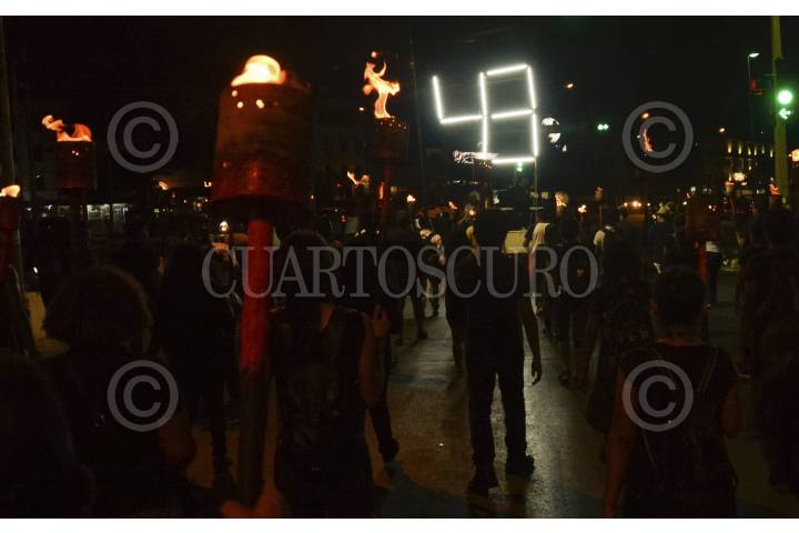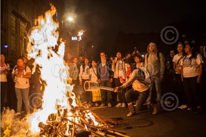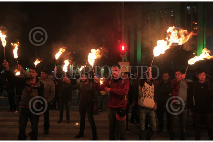 CIUDAD DE MÉXICO, 26JULIO2017.- Miembros del Movimiento de Aspirantes Excluidos de la Educación Superior realizaron una marcha de antorchas del Hemiciclo a Juárez a las oficinas de la Secretaria de Educación Pública, para exigir más espacios en las universidades y nuevas escuelas públicas y gratuitas. Al llegar a la SEP, los jóvenes realizaron una fogata que minutos después fue sofocada por los granaderos. FOTO: TERCERO DÍAZ /CUARTOSCURO.COM