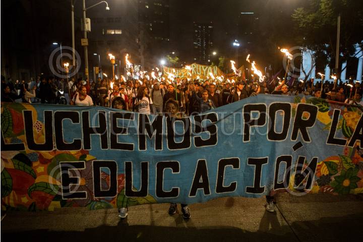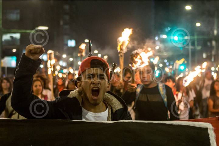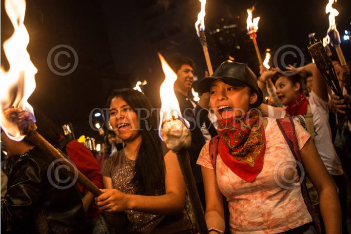 MÉXICO, D.F, 22OCTUBRE2014.- Con antorchas, miles de estudiantes de instituciones educativas privadas y públicas del país se manifestaron del Ángel al zócalo capitalino para exigir la presentación con vida de los 43 estudiantes desaparecidos de la Normal Rural de Ayotzinapa, Guerrero. FOTO: RODOLFO ANGULO /CUARTOSCURO.COM