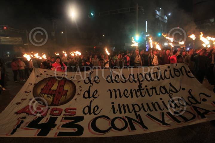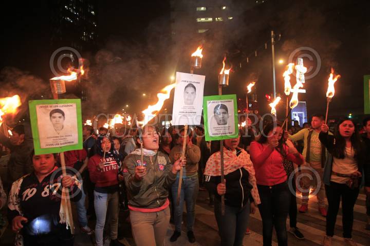CIUDAD DE MÉXICO, 25SEPTIEMBRE2018.- Con antorchas normalistas de la escuela normal "Raúl Isidro Burgos" se manifestaron para exigir la presentación con vida de los 43 normalistas de Ayotzinapa, desaparecidos hace ya casi 4 años. El contingente partió del Hemiciclo a Juárez al Antimonumento, en avenida Reforma. FOTO: MOISÉS PABLO /CUARTOSCURO.COM
