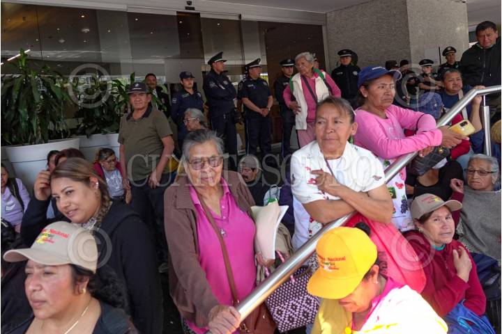 Integrantes de la Asamblea Nacional de Usuarios de Energía Eléctrica se manifestaron frente a Palacio Nacional para exigir servicios médicos.