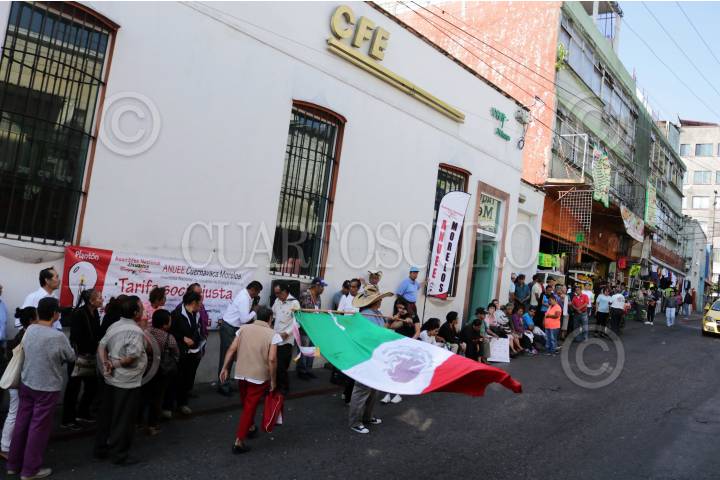 CUERNAVACA, MORELOS, 19NOVIEMBRE2019.- Protesta de la Asamblea Nacional de Usuarios de Energía Eléctrica en un cajero de la Comisión Federal de Electricidad ubicado en el centro de la ciudad. Los ciudadanos exigen tarifas justas y no más “recibos locos” donde se les cobra miles de pesos por la energía eléctrica que consumen. FOTO: MARGARITO PÉREZ RETANA /CUARTOSCURO.COM