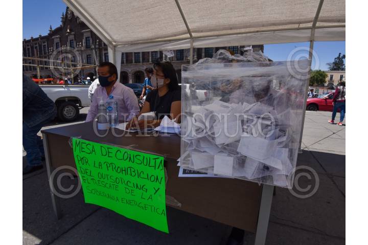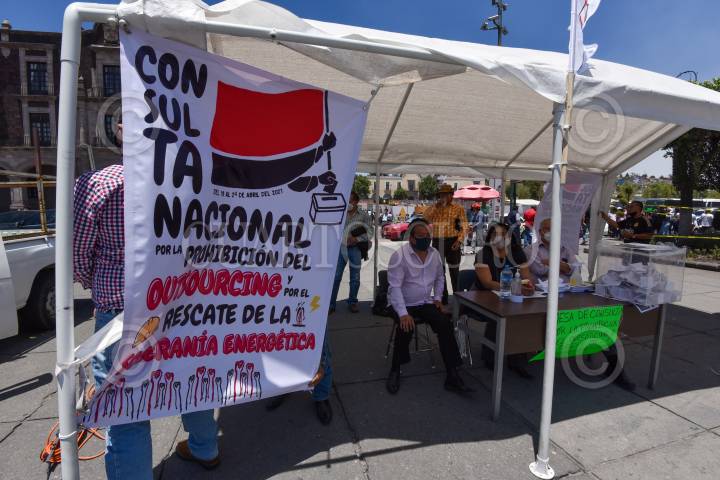 Integrantes de la Nueva Central de Trabajadores (NCT) y la Asamblea Nacional de Energía Eléctrica (ANUEE) iniciaron una consulta por la prohibición del Outsourcing y por el recatar de la soberanía energética en la capital mexiquense.