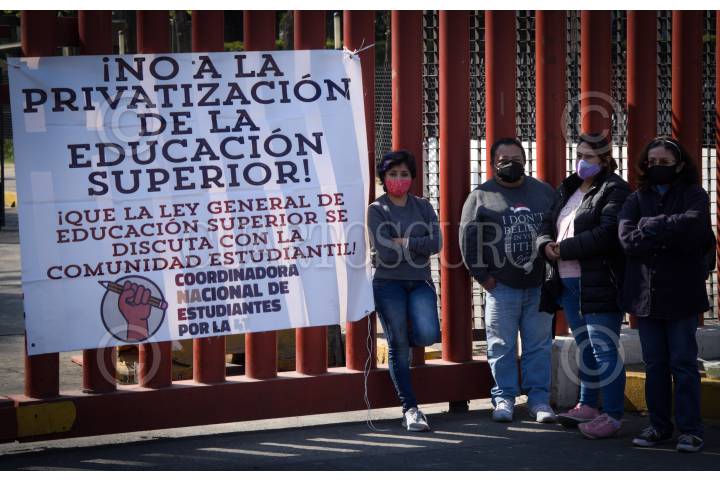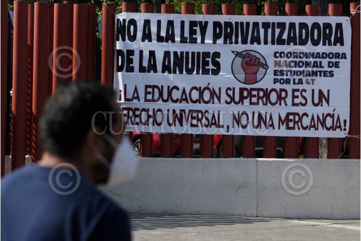Integrantes de la "Coordinadora Nacional de Estudiantes por la 4T" bloquearon accesos del recinto Legislativo de San Lázaro para exigir una audiencia con Adela Piña Bernal, presidente de la comisión de educación de la Cámara de Diputados para dialogar sobre aspectos de leyes que involucran a la Asociación Nacional de Universidades e Instituciones de Educación Superior (ANUIES).