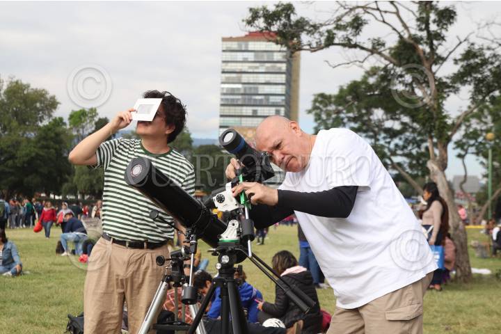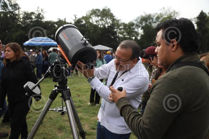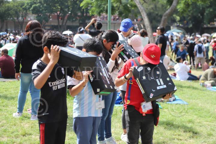 CIUDAD DE MÉXICO, 14OCTUBRE2023.- Capitalinos acuden a las islas de Ciudad Universitaria donde se realizan actividades para la observación del eclipse anular de sol. Fenómeno cósmico en el que la Luna proyecta una sombra sobre el planeta tierra. FOTO: EDGAR NEGRETE LIRA/CUARTOSCURO.COM
