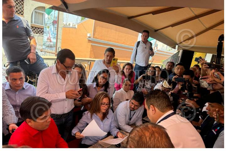 CUERNAVACA, MORELOS, 05JUNIO2024.- Conferencia de prensa de Lucia Meza, quien contendió a la gubernatura de Morelos por la coalición "Por la Seguridad y Dignidad de Morelos, Vamos todos" integrada por el PRI, PRD, PAN y el partido local Redes Sociales Progresistas, anuncio que cuenta con pruebas para pedir que la elección se anule. Al final de la conferencia llegaron al sitio agentes de la Fiscalía Especializada en el Combate a la Corrupción, quienes le notificaron una denuncia en su contra, sin que se conozca detalles de ella. FOTO: ESPECIAL/CUARTOSCURO.COM