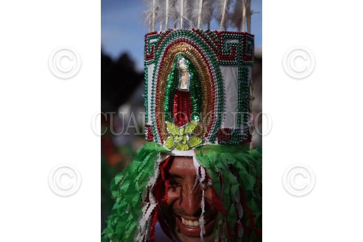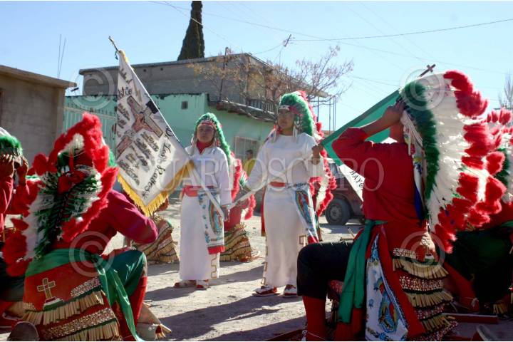 CIUDAD JUAREZ, CHIHUAHUA 12DICIEMBRE2004.- Un grupo de jóvenes vestidos de apache ejecutó la danza de ¨matlachines¨ como parte de los festejos en honor a la Virgen de Guadalupe. Los franciscanos que participaron en su fundación le otorgaron el nombre Mision de Guadalupe de los indios mansos de Paso del Norte. Los indios mansos, comparten la raíz étnica con los apaches motivo por el que utilizan el mismo tipo de penacho e indumentaria. FOTO: JGuadalupe Perez/CUARTOSCURO.COM