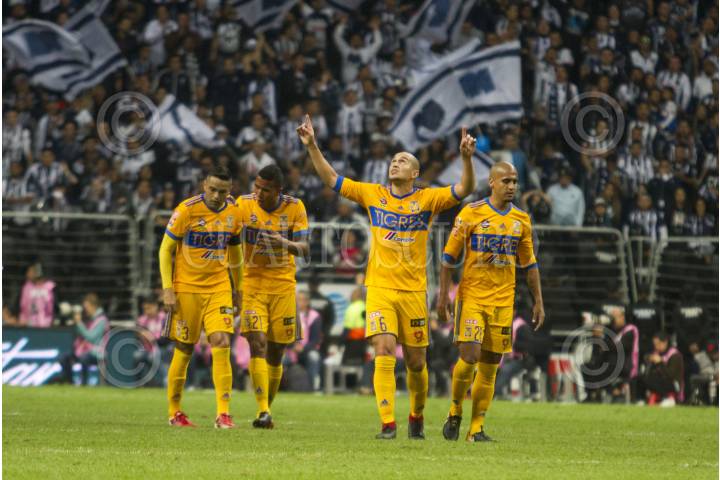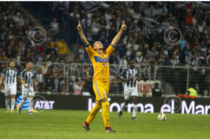 MONTERREY, NUEVO LEÓN, 10DICIEMBRE2017.- Jorge Torres Nilo del equipo de los Tigres de la UANL, celebra el gol ante el equipo de los Rayados del Monterrey, en el estadio BBVA Bancomer, partido final de vuelta de la Liguilla, Apertura 2017. Marcador al Medio Tiempo: Monterrey: 1 - Tigres: 2 FOTO: GABRIELA PÉREZ MONTIEL /CUARTOSCURO.COM
