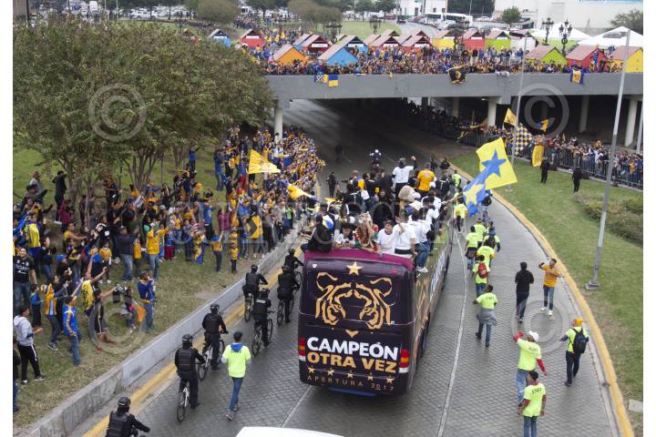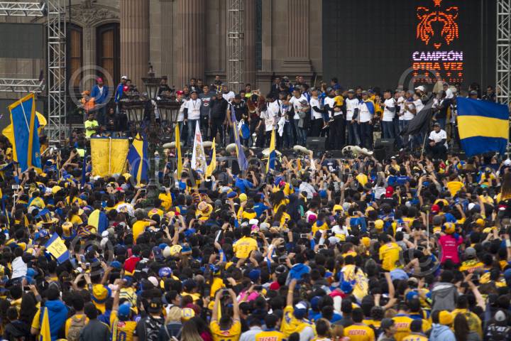 MONTERREY, NUEVO LEÓN, 11DICIEMBRE2017.- El Equipo de los Tigres de la UANL celebran con un recorrido oficial mostrando la copa desde el Estadio Universitario hasta la Explanada de lo Héroes, en donde más de 500 mil aficionados los esperaban. FOTO: GABRIELA PÉREZ MONTIEL /CUARTOSCURO.COM