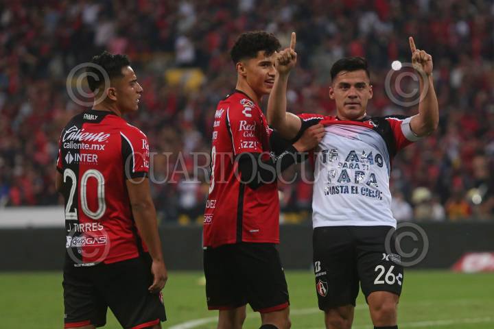 Aldo Rocha jugador de Atlas, celebra su anotación, esto durante el juego correspondiente a la final del Torneo Grita México Apertura 2021 de la Liga MX.