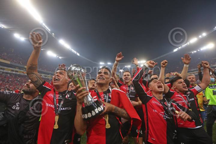 Jugadores de Atlas, celebran el campeonato al finalizar el juego correspondiente a la final del Torneo Grita México Apertura 2021 de la Liga MX.