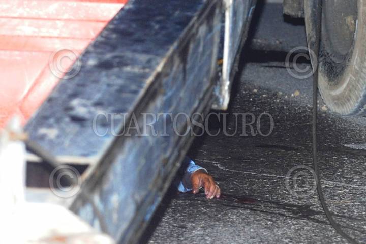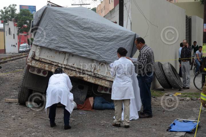 MÉXICO D.F; 28MAYO2014.- Un hombre de aproximadamente 50 años, pierde la vida aplastado por su camión cuando realizaba algunas reparaciones a su unidad, resbalando las calzas que lo mantenía elevado para caerle encima, perdiendo así la vida. FOTO: LUIS CARBAYO /CUARTOSCURO.COM