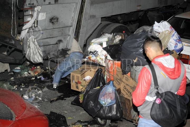 MÉXICO, DISTRITO FEDERAL., 25ABRIL2015.- Un trabajador del departamento de limpia del D.F., perdió la vida al ser aplastado accidentalmente por el mecanismo de compactación de un camión de recolector de basura para el cual laboraba. Los hechos, se registraron en Avenida Constituyentes a la altura de la calle Gobernador José Moran de la colonia San Miguel Chapultepec. FOTO: LUIS CARBAYO /CUARTOSCURO.COM