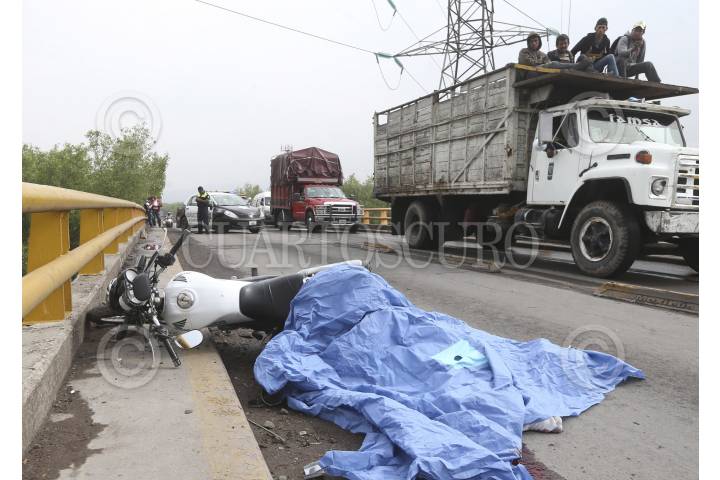 ECATEPEC, EDOMEX, 28OCTUBRE2015.- Un hombre perdió la vida al ser atropellado, sobre la Avenida Central, por un camión de carga. Las llantas de la pesada unidad destrozaron la motocicleta en la que viajaba. Los hechos en la Colonia 19 de Septiembre de este Municipio. FOTO: ARMANDO MONROY /CUARTOSCURO.COM