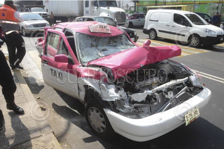 MÉXICO, D.F., 24NOVIEMBRE2015.- Volvió a nacer un taxista quien fue aplastado entre un camión de volteo y un microbus de pasajeros, el primero quedo sin frenos lanzando al taxi contra el segundo, los hechos ocurrieron en Congreso de la Unión y Juan de la Granja, colonia Penitenciaria. FOTO: ARMANDO MONROY /CUARTOSCURO.COM