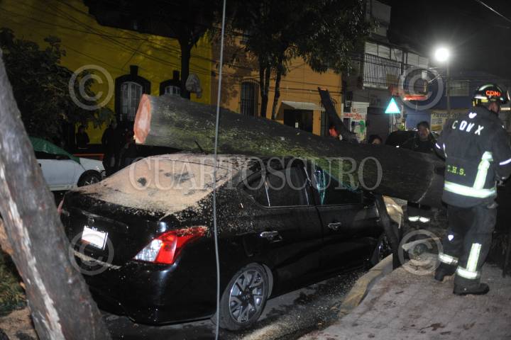 CIUDAD DE MÉXICO., 25JUNIO2019.- Árbol de aproximadamente 15 metros cae sobre auto y lo aplasta, vecinos ya habían reportado a la alcaldía, pero hicieron caso omiso, los hechos, tuvieron lugar en calle Laguna San Cristóbal y Lago Zirahuén en la colonia Anáhuac. FOTO: LUIS CARBAYO /CUARTOSCURO.COM