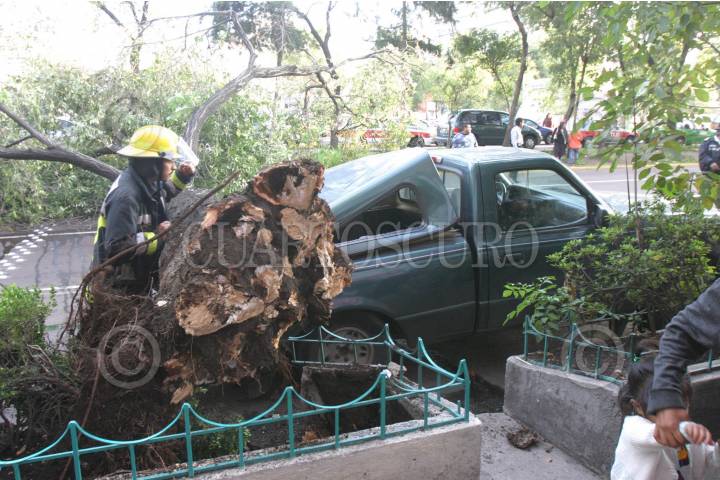 MEXICO, D.F., 28AGOSTO2007.-Sobre la avenida Chapultepec y la calle de Salamanca un arbol cayó sobre dos autos estacionado, sin presentarse ningún lesionado, elementos de los bomberos se dieron a la tarea de retirarlo. FOTO:PEDRO MARRUFO/CUARTOSCURO.COM