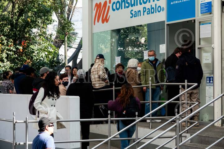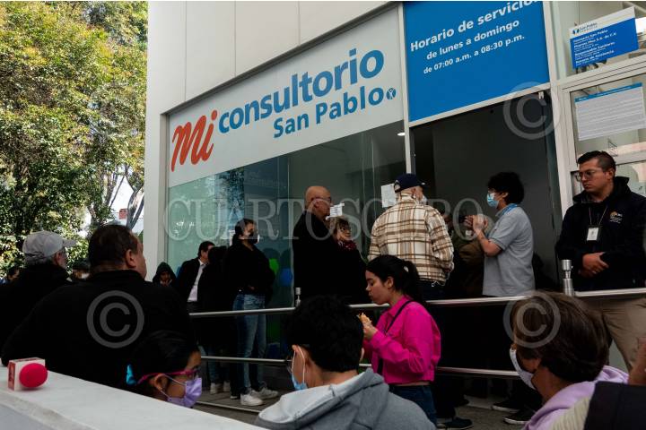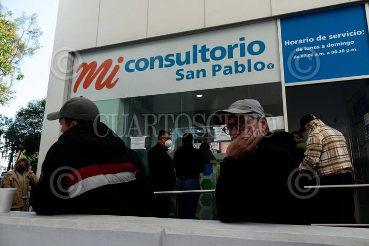 CIUDAD DE MÉXICO, 20DICIEMBRE2023.- Personas realizaron fila en un consultorio de la Farmacia San Pablo para la aplicación de la vacuna Covid-19 que a partir de hoy comenzó su venta en dichos establecimientos. Las otras tres cadenas que podrán venderlas son Benavides, Guadalajara y Del Ahorro. FOTO: GALO CAÑAS/CUARTOSCURO.COM