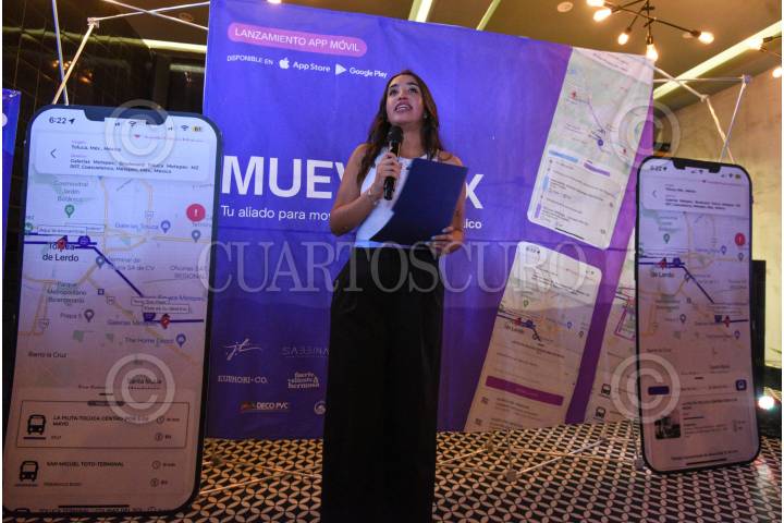 METEPEC, ESTADO DE MÉXICO, 17ABRIL2024.- Regina Paredes presentó la aplicación móvil “Muevetex” la cual permitirá mapear 296 rutas de transporte público en 31 municipios el Valle de Toluca y 29 líneas de transporte, lo cual permitirá que los usuarios puedan localizar rutas de transporte en un radio de 500 metros del punto de partida, la aplicación se encuentra en dos versiones una gratuita y de paga. FOTO: CRISANTA ESPINOSA AGUILAR /CUARTOSCURO.COM