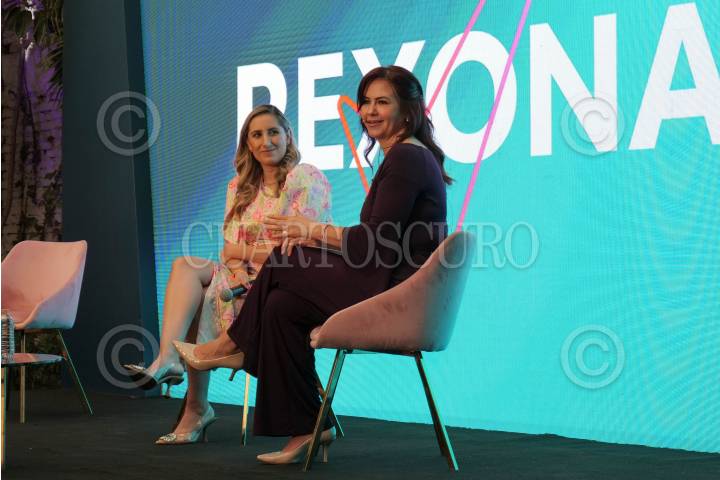 CIUDAD DE MÉXICO, 13JUNIO2024.- Thalía Reyes y Viridiana Álvarez Chávez, alpinista mexicana, presenciaron el evento de presentación de la App IA de Rexona. FOTO: ALICE MORITZ/CUARTOSCURO.COM