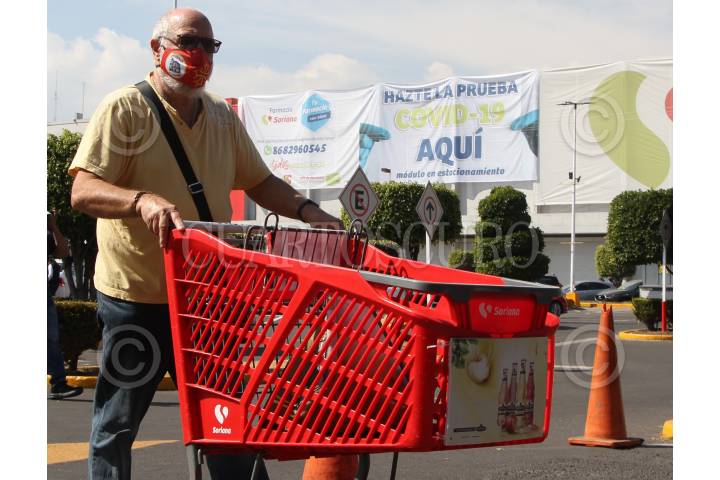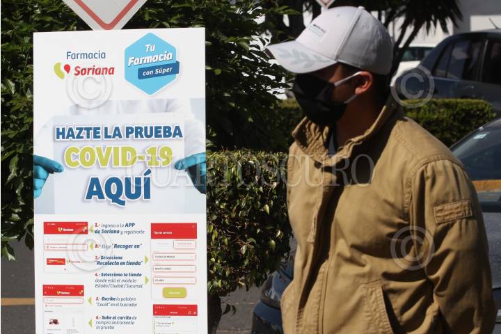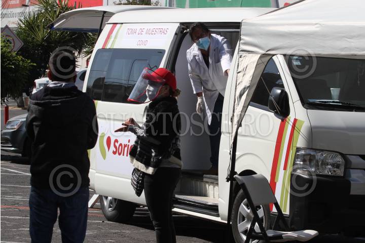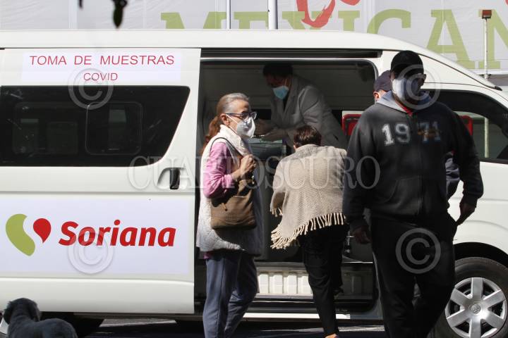 Capitalinos acuden a estacionamiento del Súper Soriana para aplicación de prueba contra COVID-19.