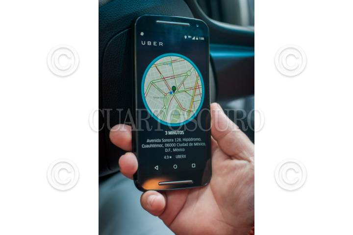 MÉXICO, D.F., 30JULIO2015.- A través de la geolocalización, un chófer de Uber espera conectar a un cliente en la zona de la colonia Condesa. Uber es una empresa internacional que proporciona a sus clientes una red de transporte por medio de una aplicación móvil. El usuario debe descargar la app y luego de registrarse debe permitirle encontrar su ubicación al chófer más cercano a través del GPS. FOTO: DIEGO SIMÓN SÁNCHEZ /CUARTOSCURO.COM